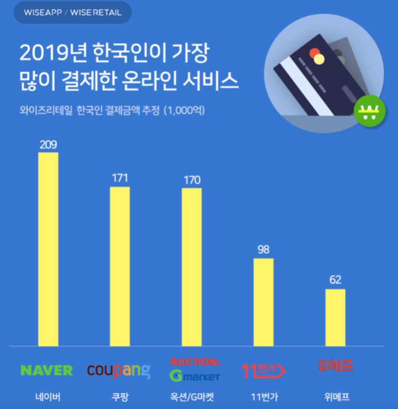 네이버 쿠팡 옥션,G마켓 11번가, 위메프 순으로 매출 현환이 나와 있습니다.