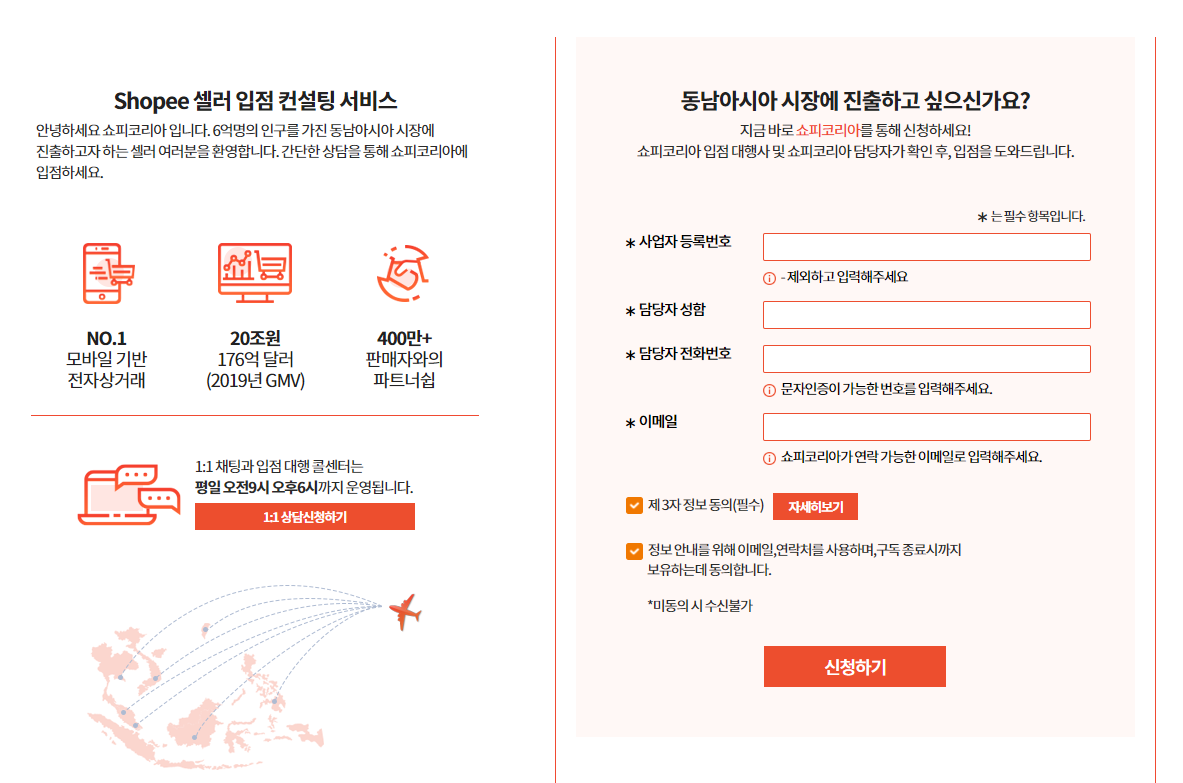 1. 쇼피코리아 홈페이지에서 글로벌 셀러로 가입 신청을 하여야 합니다.