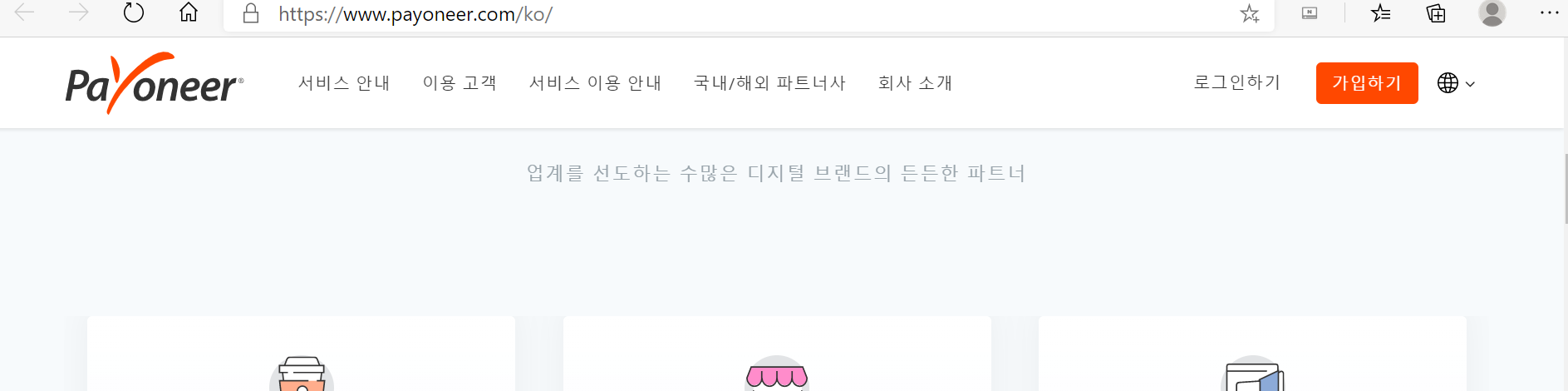 1. 인터넷 주소창에 Payoneer를 검색하시면 주소지로 이동합니다.