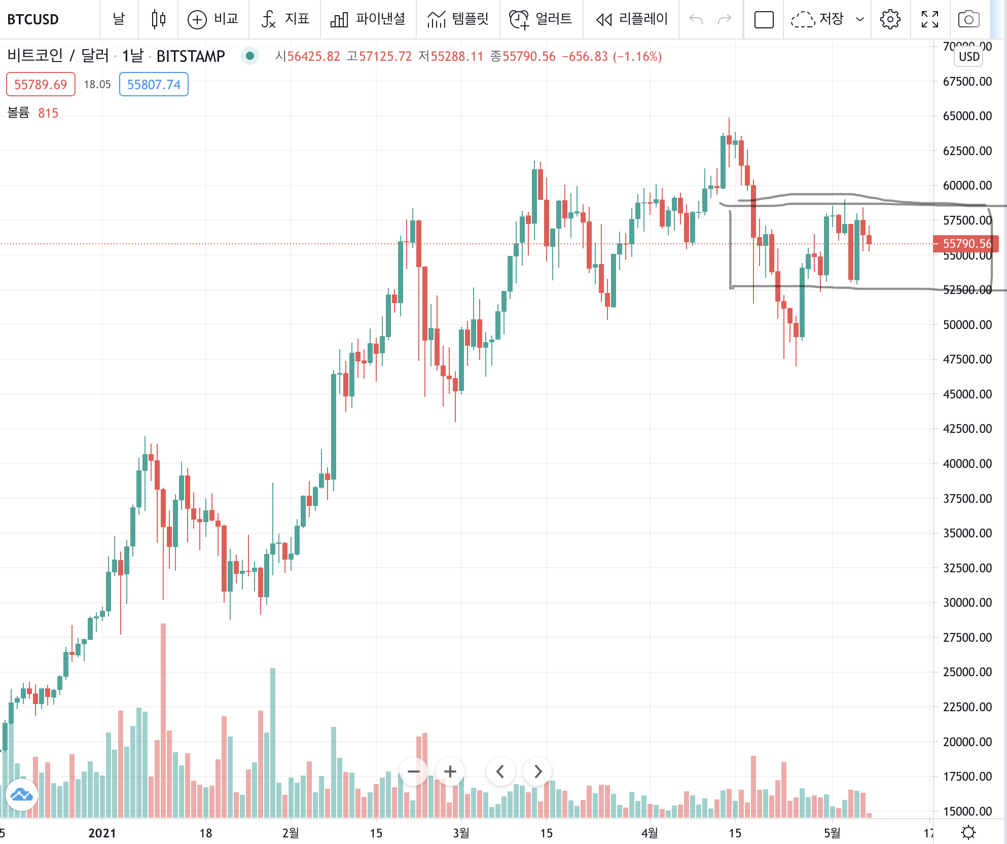 5.4일 비트코인 지지선 무너졌다. (1) | 2021.05.04 |