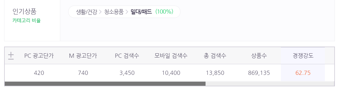이런 키워드 도구를 통해 검색한 추천 키워드 중 내가 판매하고자 하는 상품과 관련된 월평균 클릭 수는 높으면서 경쟁 정도는 낮은 키워드를 추출 해야 합니다.