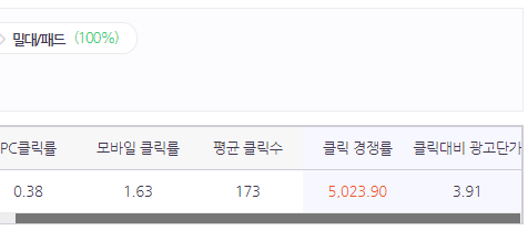 4) 평균 클릭 률: 최근 한달간 해당 키워드로 통합 검색 영역에 노출된 광고가 받은 평균 클릭율